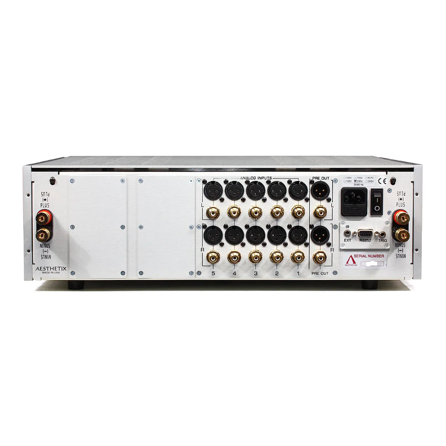- 5 inputs, both balanced and single ended: Whereas most companies offer 0, or perhaps one or two balanced inputs on their integrated amps, Aesthetix highlights its commitment to balanced technology by offering balanced (XLR) on each and every analog input.